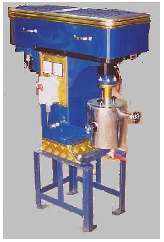 Bead Mills are made in SS 304 or SS 316 construction with jacket of mild steel for water cooling. The pigments,resin and other parts of the material to be processed like enamel paints, coatings, automotive paints,flexo, gravure inks are fed in the machine. The centre shaft with the discs rotates at around 300 RPM and material is allowed to mix and grind properly. Once the parameters are achieved the material can be easily discharged from the ball valve given at the bottom end. The speed of the machine can be varied by putting an AC frequency drive. All the electrical parts are built in the machine.